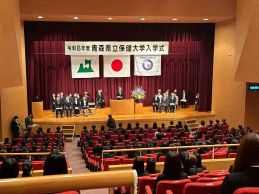 2026年4月3日(金)、令和8年度青森県立保健大学入学式が行われ、栄養学科19期生33名と編入生2名が入学しました。新たな環境での出会いや学びを通して、充実した学生生活になることを願っています。また、栄養学科同窓会より、お祝いのお花が贈られました。